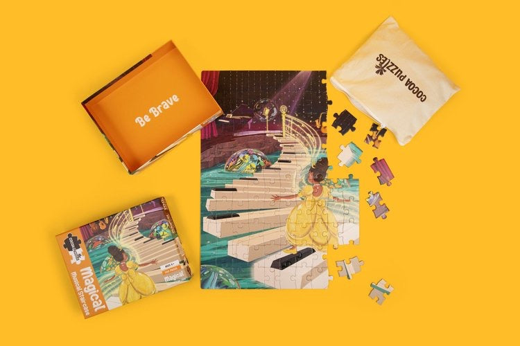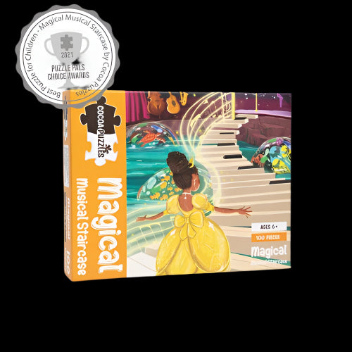 Award Winning Design - Voted the 2021 Best Puzzle for Children | Puzzle Pal Choice Awards. Climb up the Magical Musical Staircase, take your place on the stage and let your voice shine. This piece tells a story of a little girl who dreams of becoming a singer, and although the path to success has twists and turns, she continues to hold her head up and keep her eyes on the prize.
